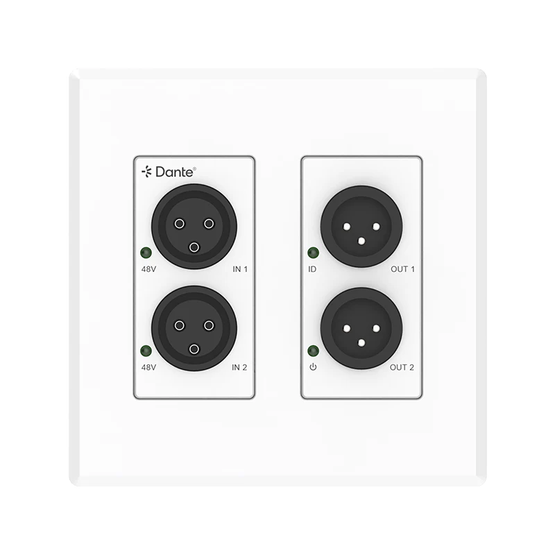 Denna kompakta 2Channel Analog XLR Dante Converter använder Dante® Ultimo 2x2-plattformen, som sömlöst överbryggar traditionella analoga ljudenheter till ett Dante® digitalt nätverk. Designad som en standard 2-GANG US väggplatta, ger den flexibel integration för både äldre och moderna ljudsystem.