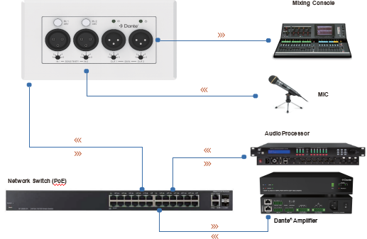 Tillämpningar av 2Channel Analog XLR Dante Converter för amerikansk standard: