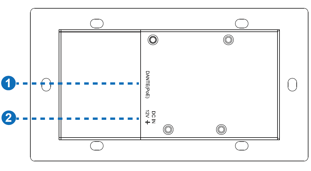 1x DANTE [RJ45 kontakt, PoE] [Digitalt ljud in/ut, PCM 2CH 44.1K-96KHz 16/24Bit]